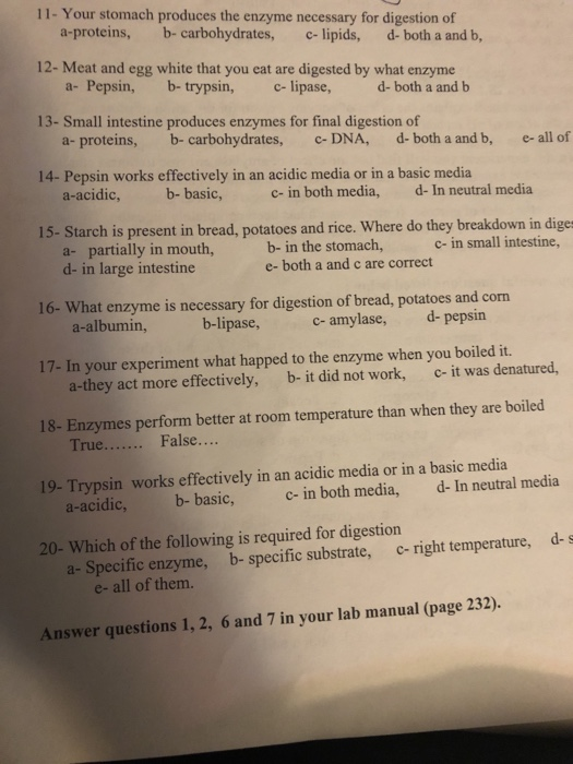 Solved 11 Your Stomach Produces The Enzyme Necessary For Chegg Com